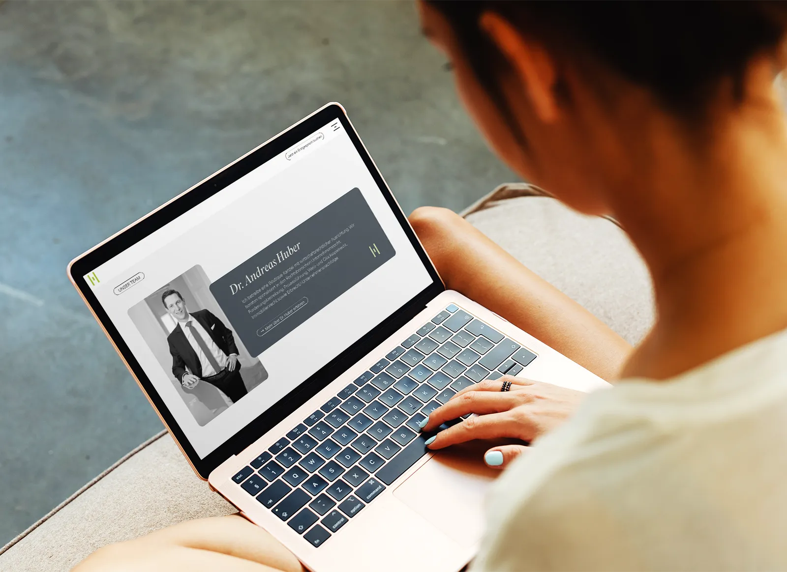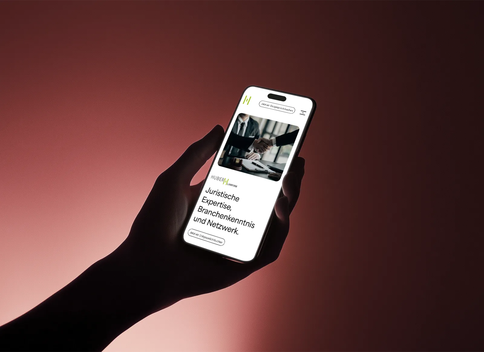 Für die Anwaltskanzlei HUBER|Lawfirm im 9. Bezirk in Wien entstand ein umfassendes Redesign, das Seriosität und zeitgemäße Modernität in einem ausgewogenen visuellen Gesamtkonzept vereint. Ziel war ein digitaler Auftritt, der Mandant*innen bereits beim ersten Kontakt ein Gefühl von Professionalität, Klarheit und verlässlicher Serviceorientierung vermittelt – ein Erscheinungsbild, das die juristische Expertise der Kanzlei ebenso sichtbar macht wie ihren hohen Anspruch an Präzision und Benutzerfreundlichkeit.